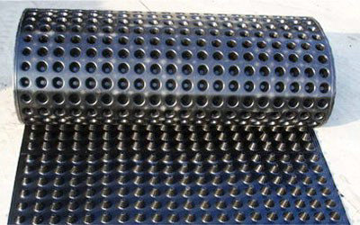 塑料排水板 塑料排水板應用于屋面工程時可直接平鋪于防水層之上,代替傳統屋面中防水層之上7cm厚的鋼筋混凝土剛性保護層,從而使保護層由原來的剛性變為柔性,使施工更加簡便、快捷,而且從根本上減少了剛性保護層施工過程中對已完成的防水層的破壞,從整個工程角度來看,塑料排水板施工速度快無需養護回填土隨后跟進,大大縮短了工期,節省人力、財力、物力。